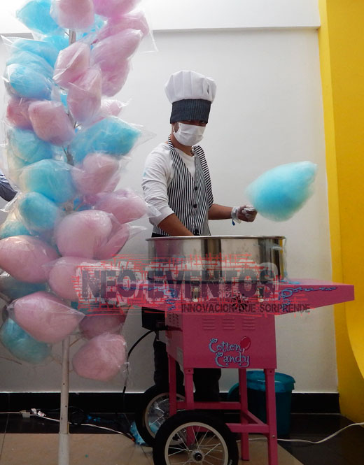 Alquiler máquina de algodón de azúcar en Bogotá, chía, Tabio , Tenjo , Cota, Funza , cajica, Villavicencio, Medellín Bucaramanga, Cartagena, Montería, Cali, Pereira y resto del país. Maquinas ideales para eventos sociales, familiares, eventos empresariales, Alquiler maquinas para hacer algodón de azúcar en diferentes colores azul, rosa, lila, verde, amarillo, naranja, con sabores y olores frutales para apoyo a agencias Btl, centros comerciales, ferias en pueblos, despedidas de fin de año, lanzamientos y promoción de marcas. Contamos con variedad en diseños y colores. Nuestras maquinas de algodones son tipo feria americana cuenta con excelente presentación disponibles para venta y alquiler. Con personal logístico y operario capacitado en manipulación de alimentos, servicio y atención al cliente, nuestros servicios son a nivel nacional.